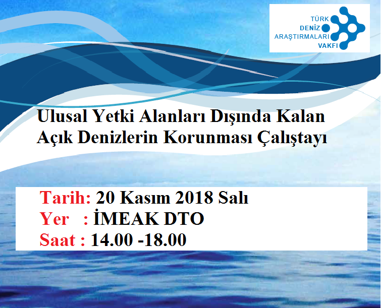 Türk Deniz Araştırmaları Vakfı (TÜDAV) tarafından organize edilen "Ulusal Yetki Alanları Dışında Kalan Açık Denizlerin Korunması" konulu Çalıştay 20 Kasım 2018 Salı günü 14:00 – 18:00 saatleri arasında İMEAK Deniz Ticaret Odası Meclis salonumuzda (Pürtelaş Hasan Efendi Mahallesi, Mecli ......